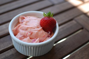 Beat butter, powdered sugar and salt together in medium bowl. Add in half the strawberries, trying to leave as much of the liquid behind as possible. Beat them in until somewhat incorporated. Add in the remaining strawberries, again leaving as much of the liquid behind as possible. Stir until smooth (or beat if you don’t like as many chunks).
